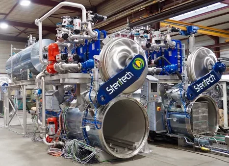 Dans les autoclaves à process Air Vapeur, la vapeur d’eau est utilisée pour chauffer, cuire et stériliser les produits.