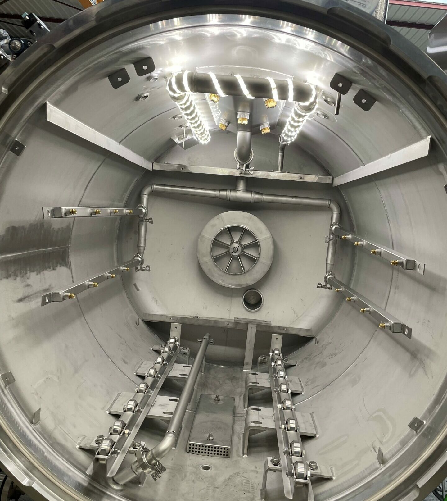 Le traitement thermique dans nos autoclaves à Aspersion d’eau, se fait grâce à la pulvérisation d’eau sous-pression sur les paniers remplis de produits.